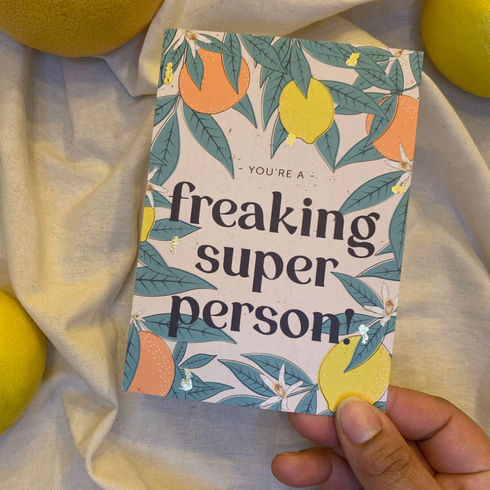 This one-sided Melocard features a unique handcrafted design that makes it a little piece of art for any space. It’s printed on high-quality 300g Oud Hollands (textured) paper and comes in A6 size (10.5 x 14.8 cm).