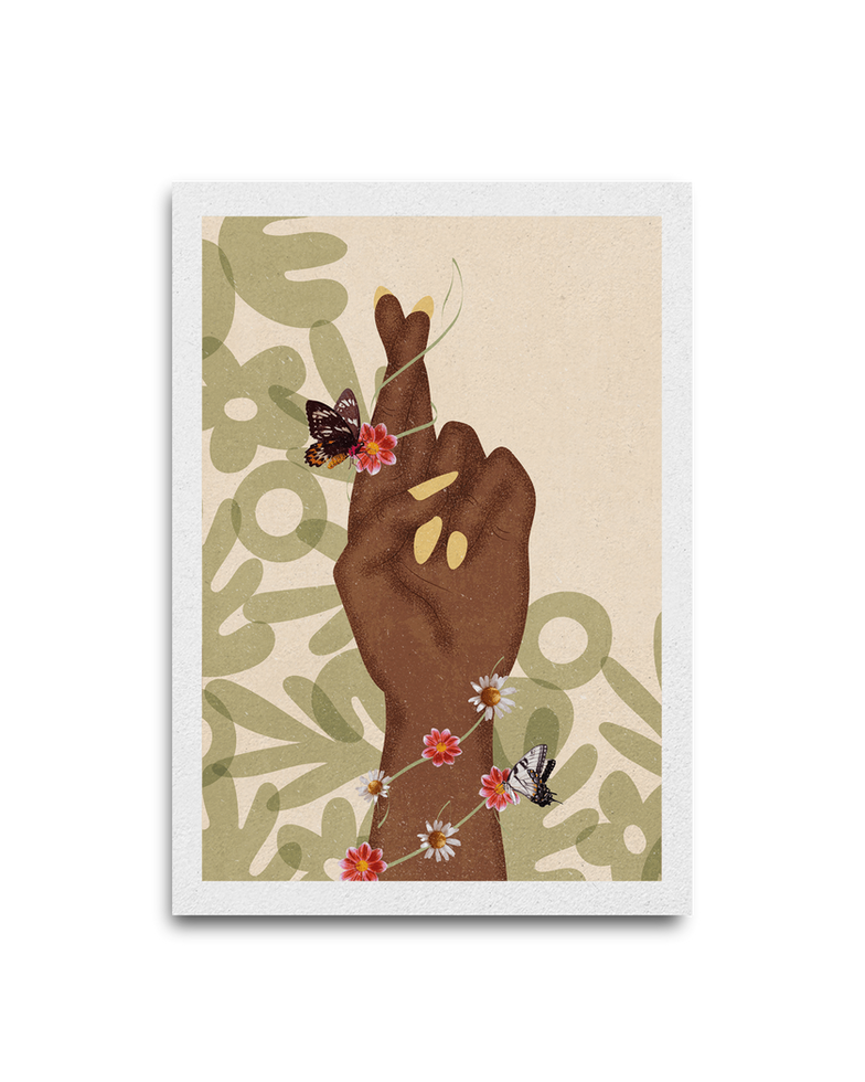 This one-sided Melocard features a unique handcrafted design that makes it a little piece of art for any space. It’s printed on high-quality 300g Oud Hollands (textured) paper and comes in A6 size (10.5 x 14.8 cm).